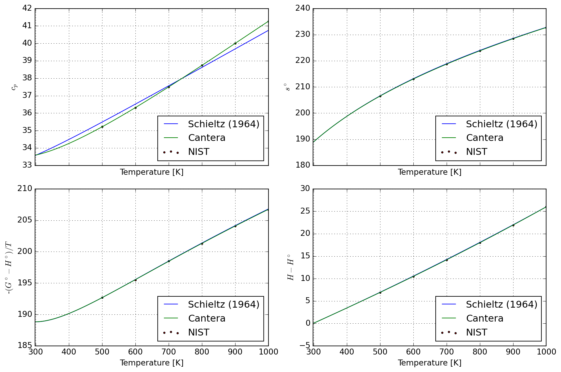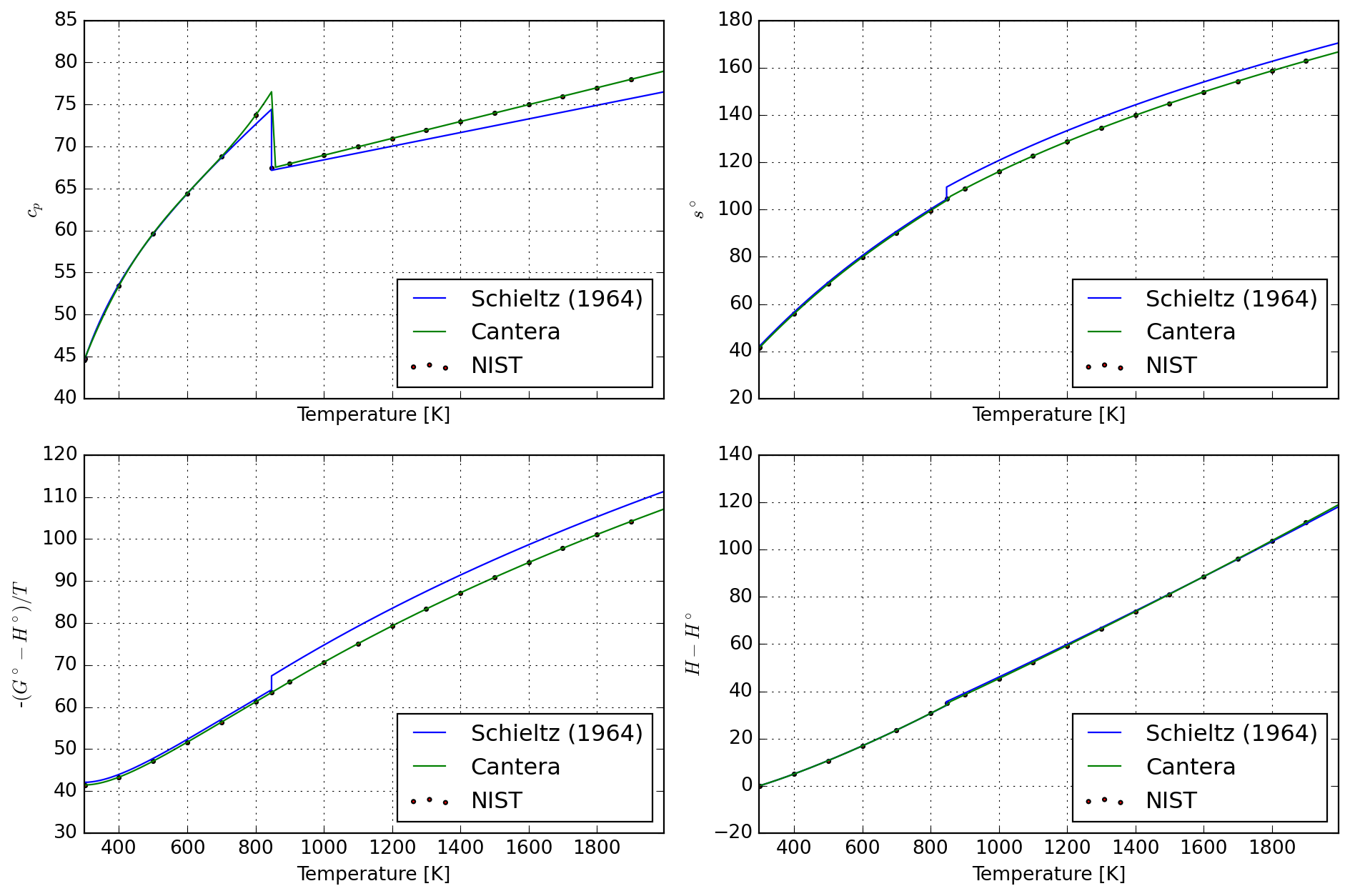 The goal of this tutorial is to illustrate how to transform other thermodynamic data formats (here the closely related Maier-Kelly) into Shomate formalist for use with Cantera. This is especially useful for composing larger databases with standardized properties.